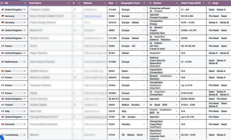 All newly launched VC funds in Europe, updated monthly (past 7+ months). With filters for stage, geography and sector.